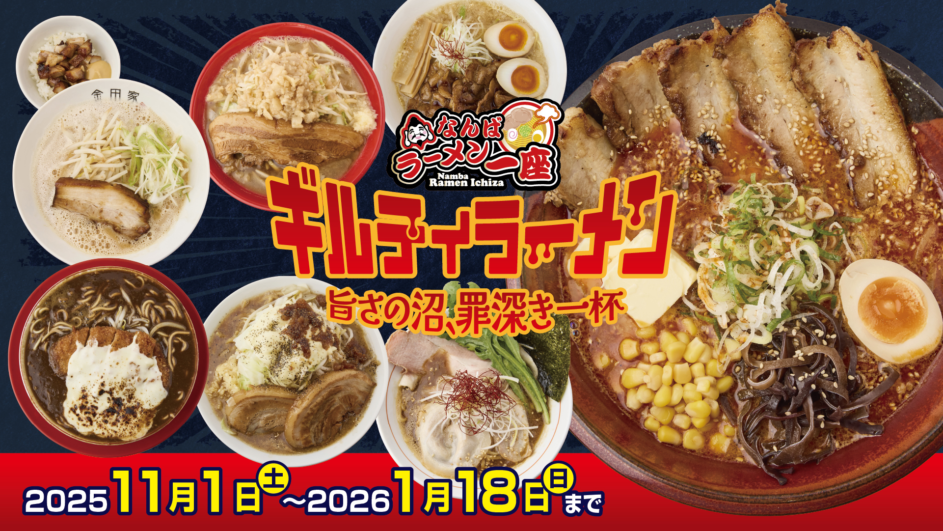集まったラーメン店はラーメン一座となって、それぞれ自慢の秘伝レシピで味の競演を繰り広げ、なんばに新たなラーメン食文化を切り開きます。